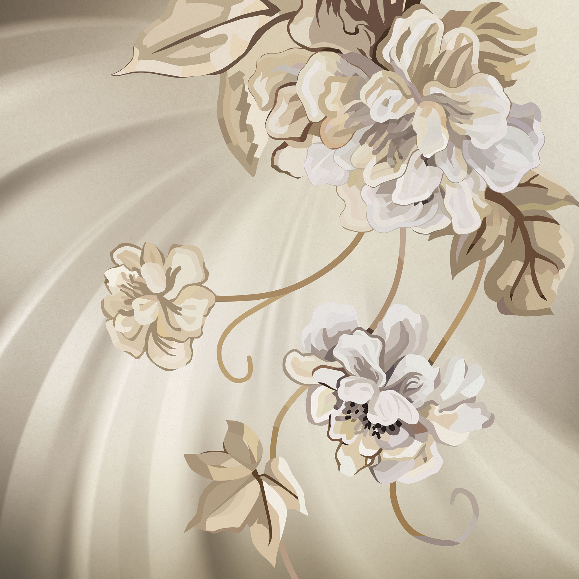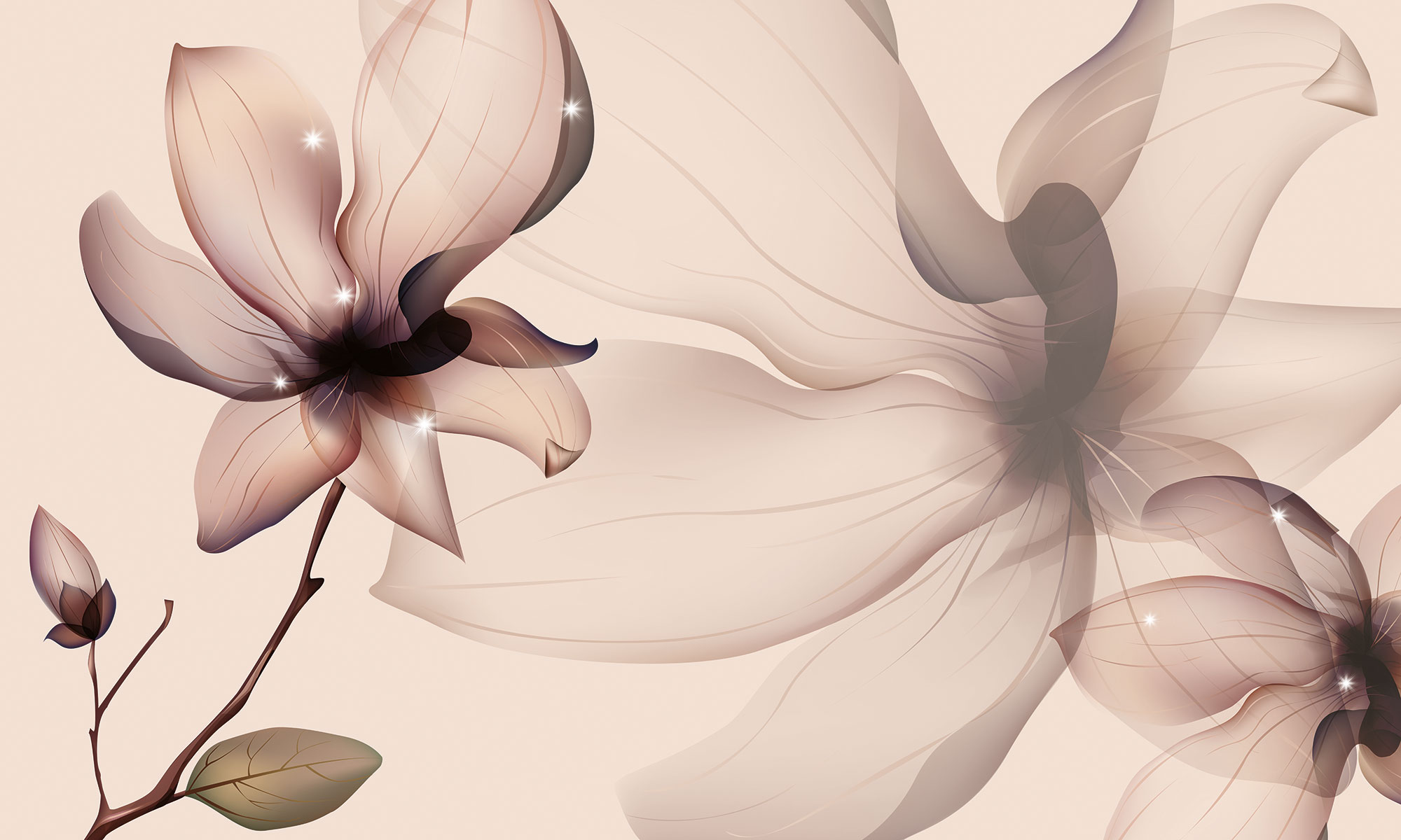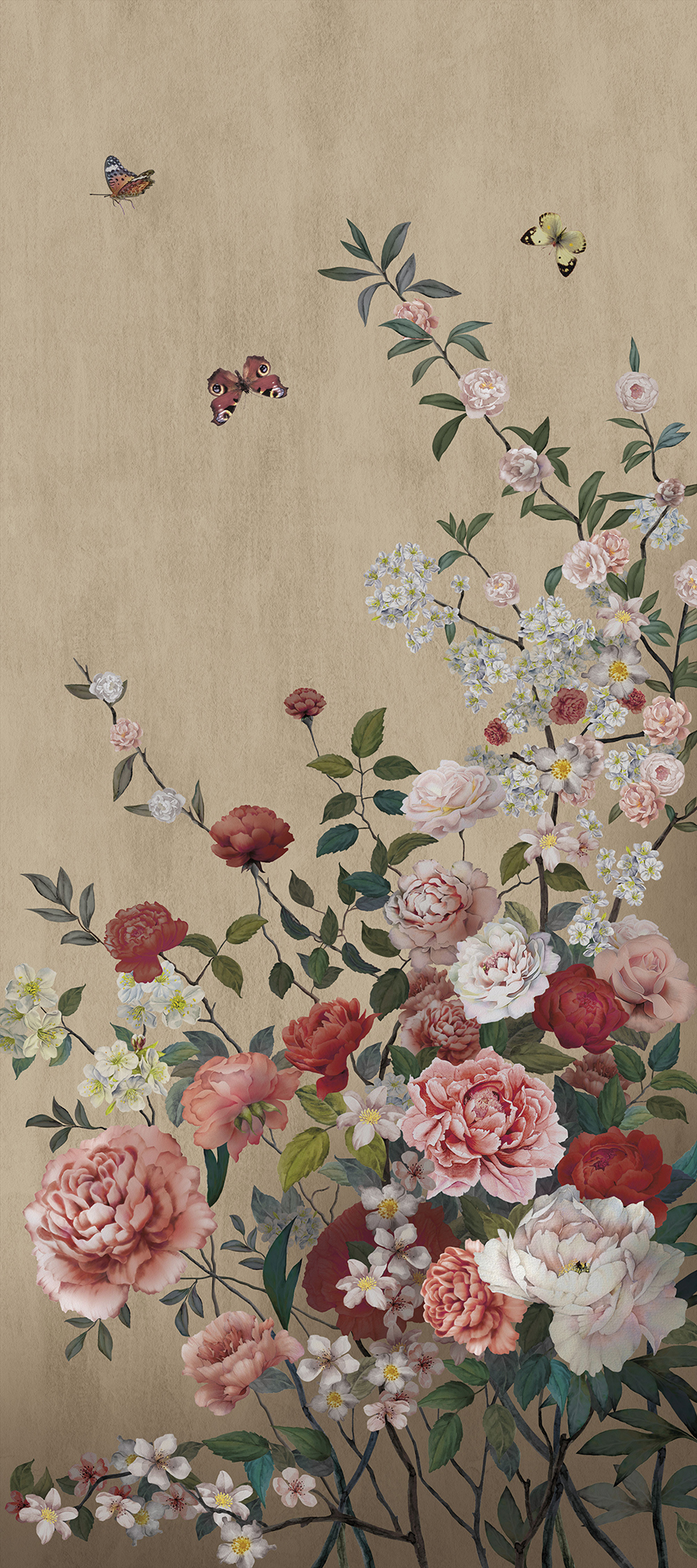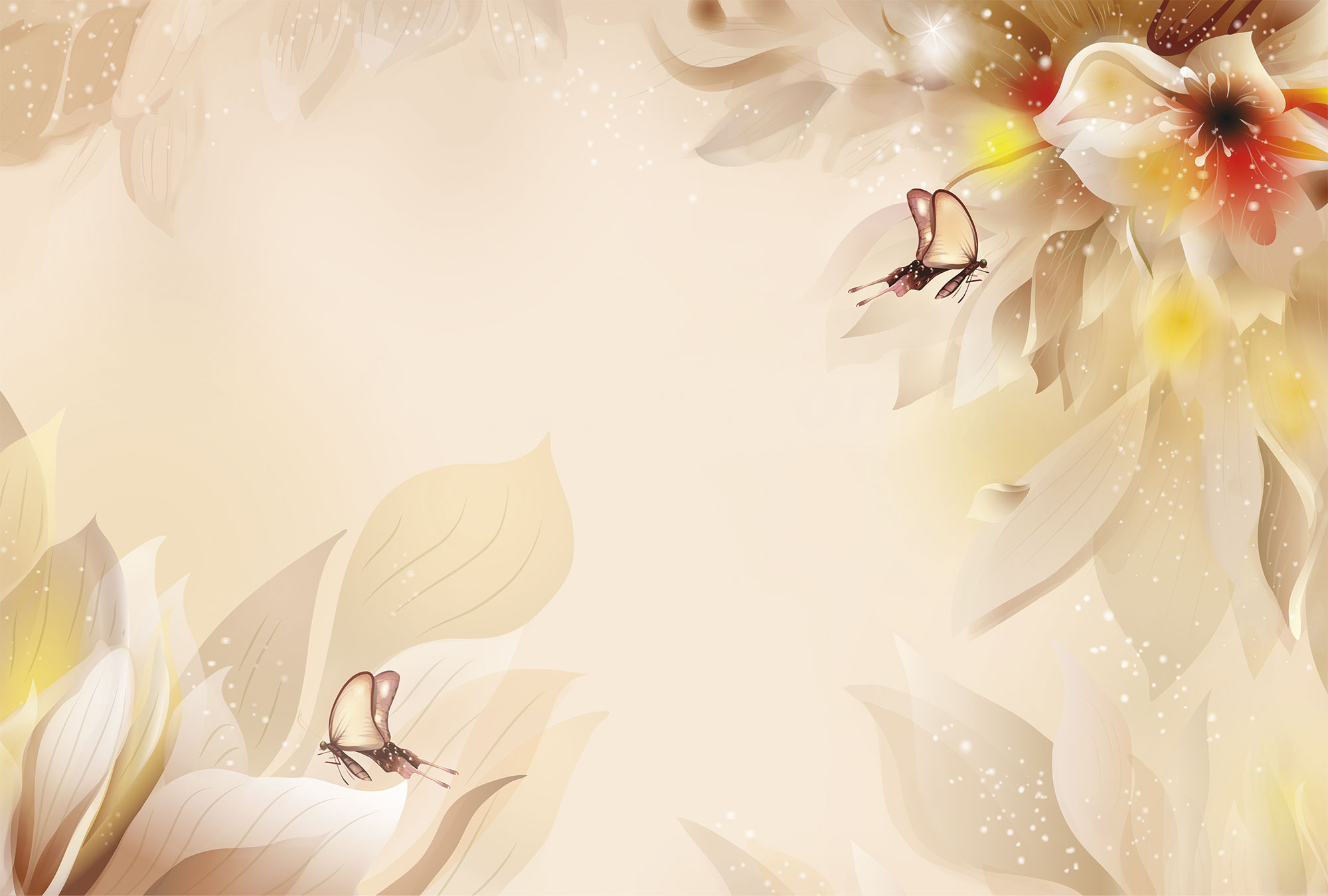 Бежевые цветочки и бабочки