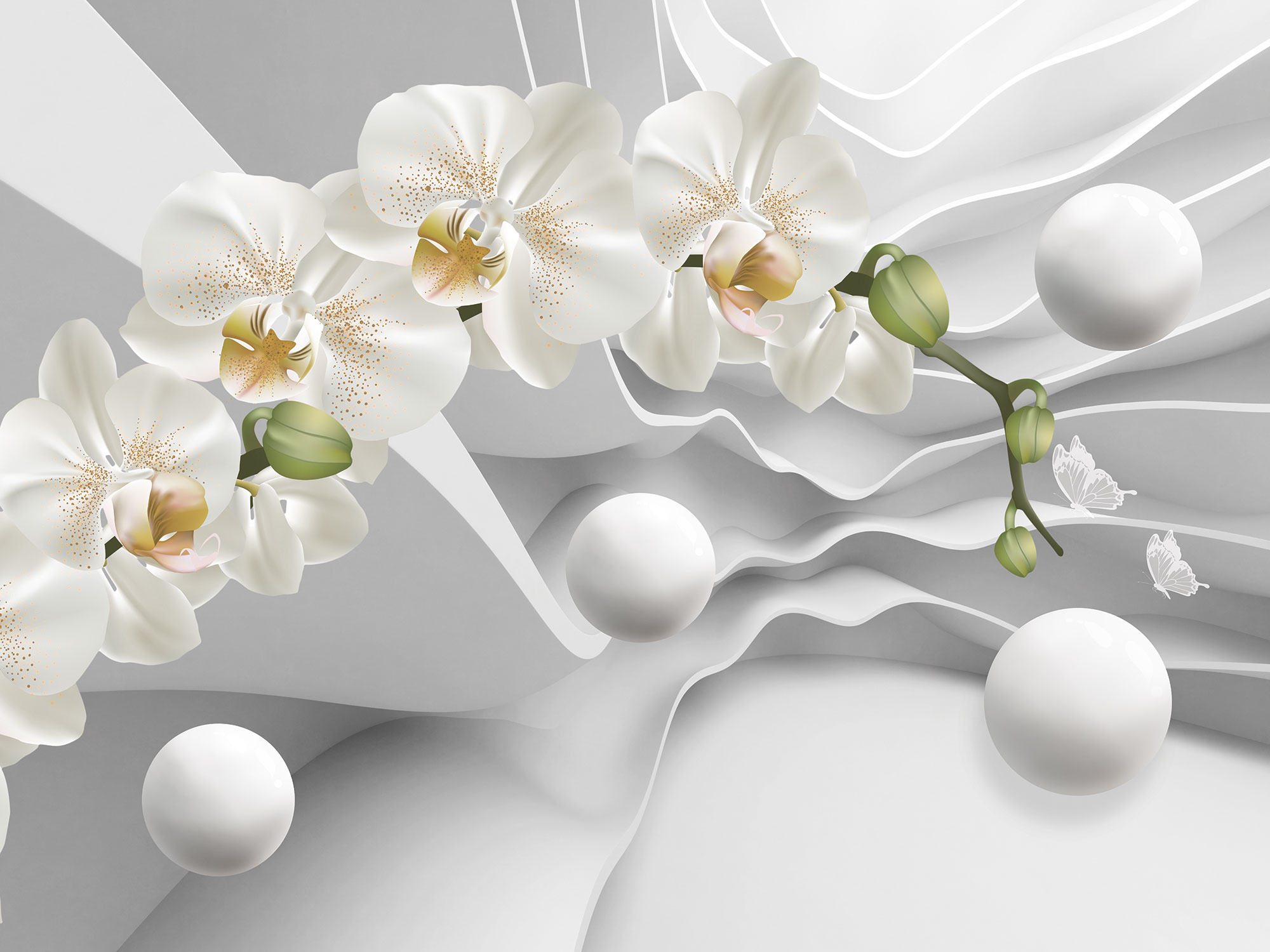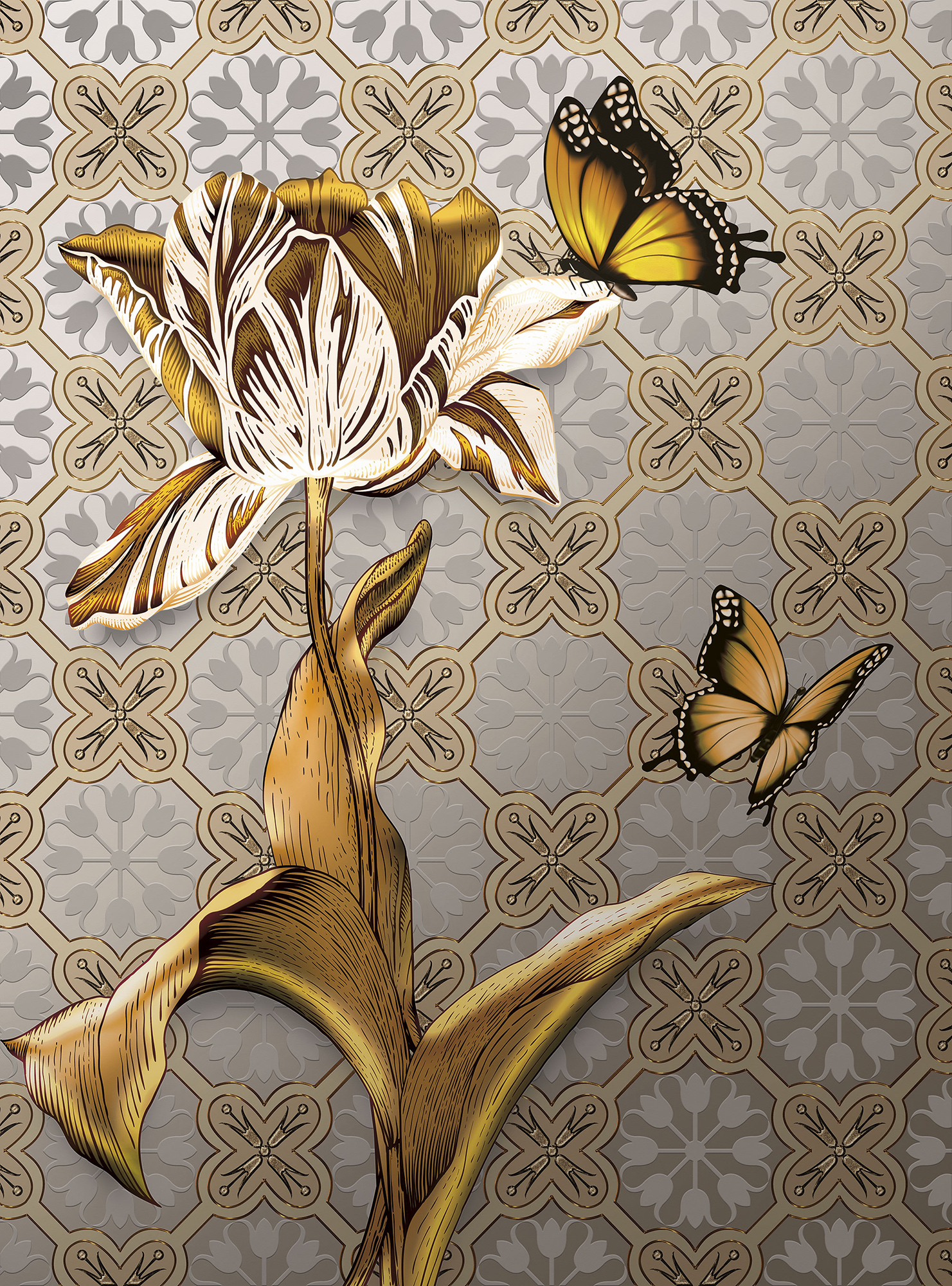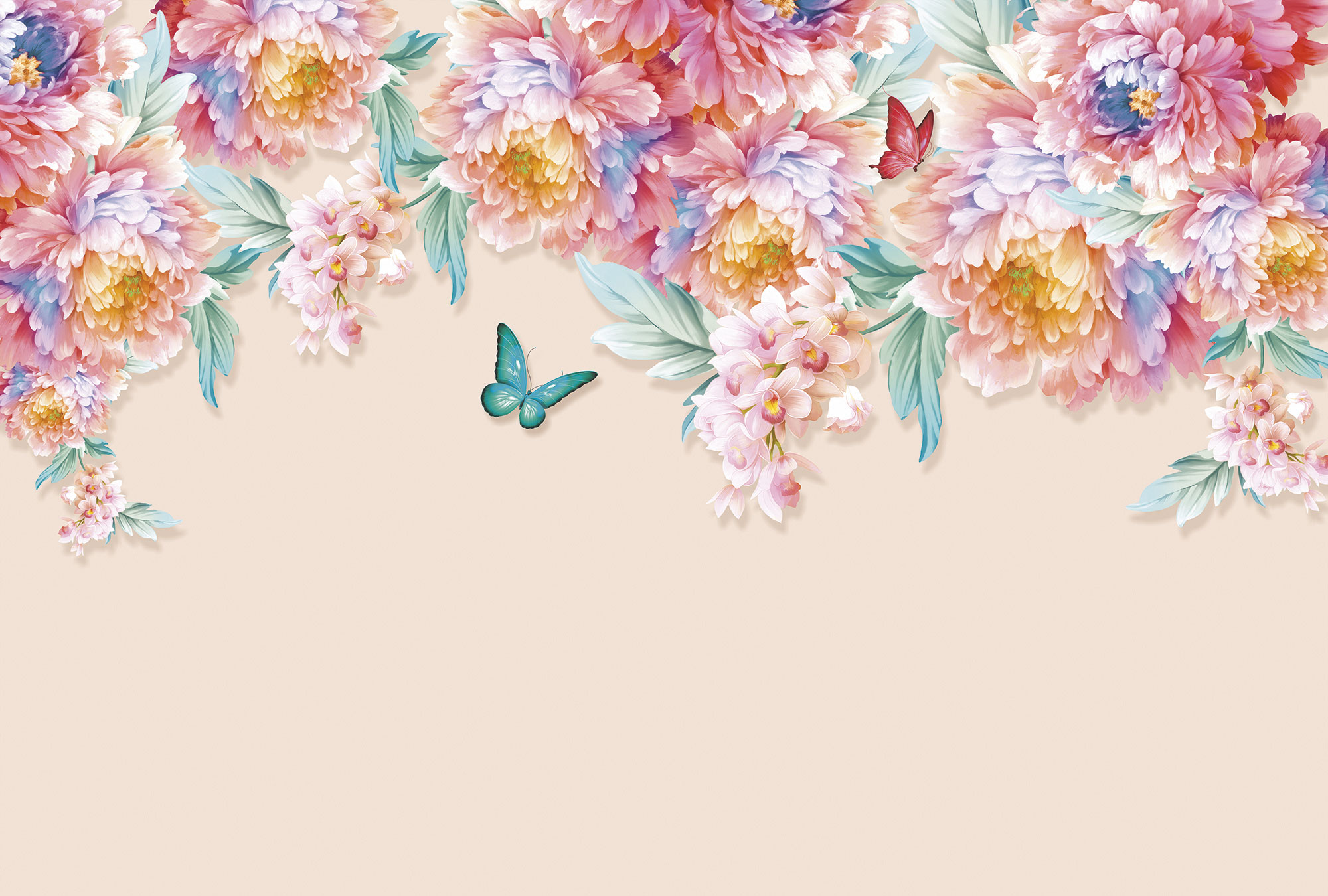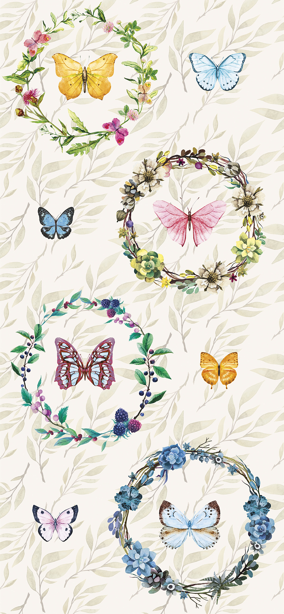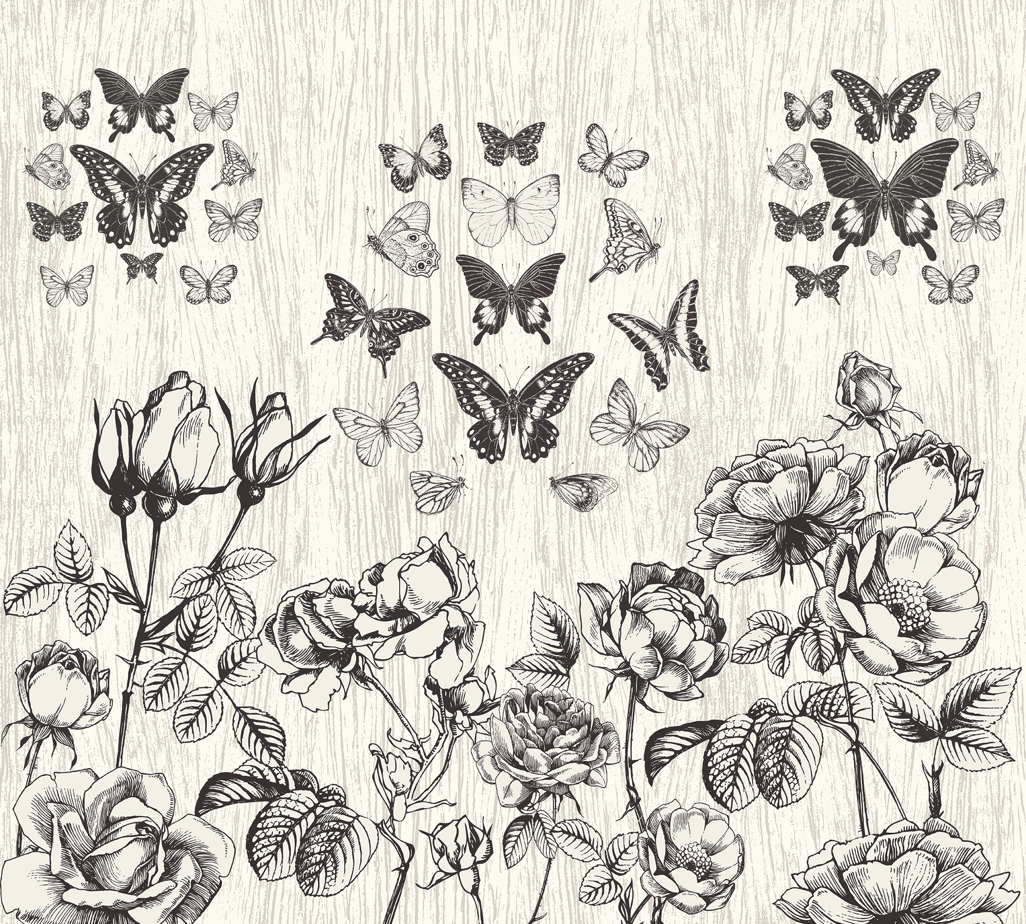 Бежевые цветочки и бабочки