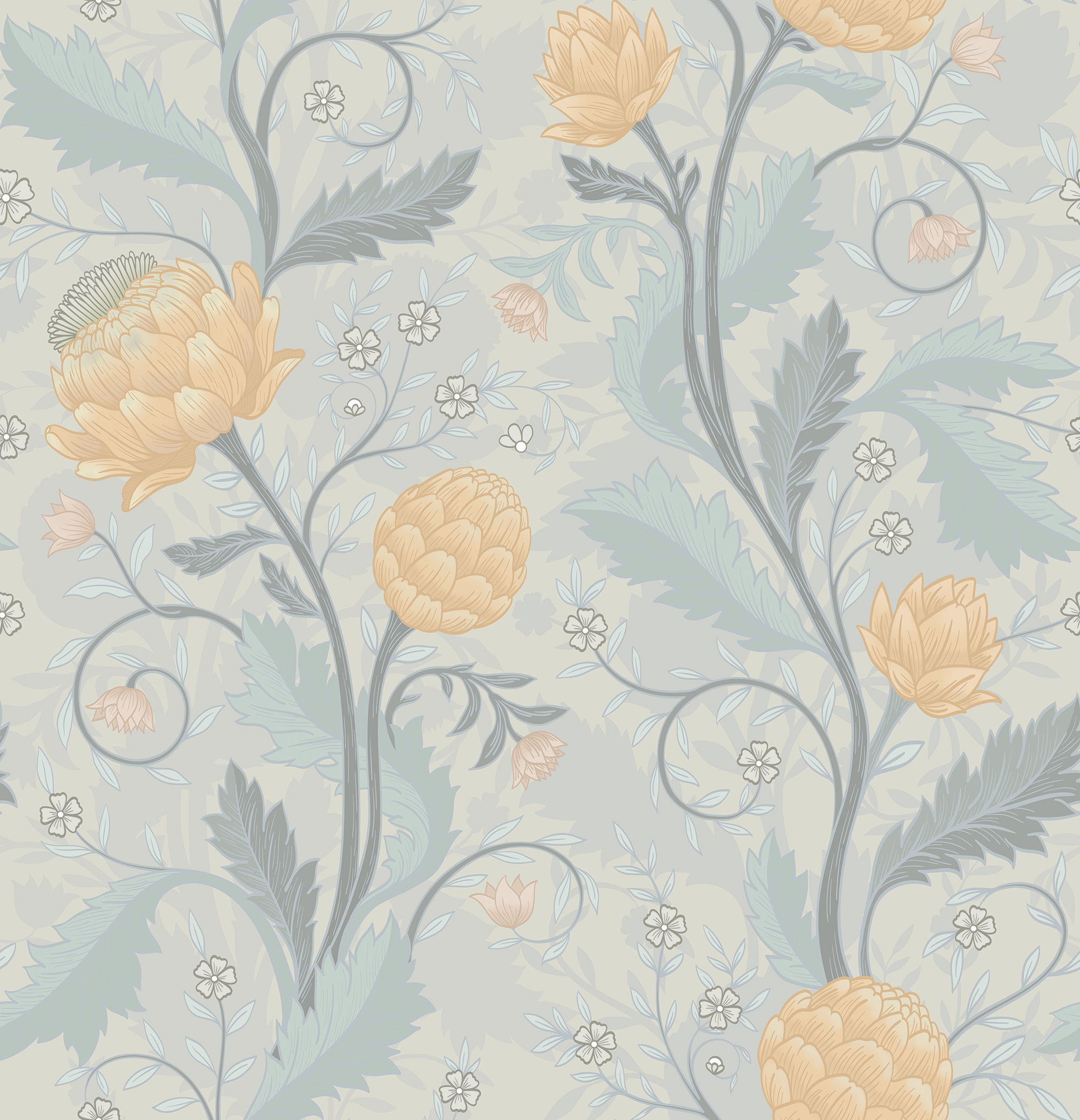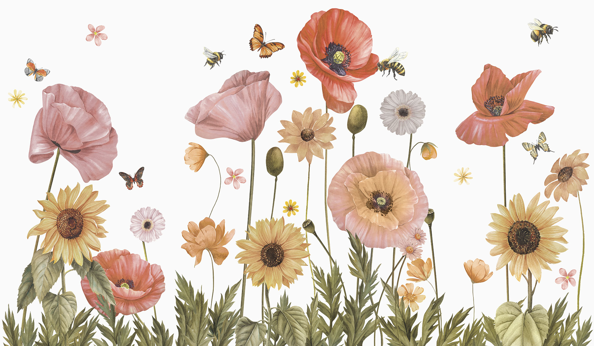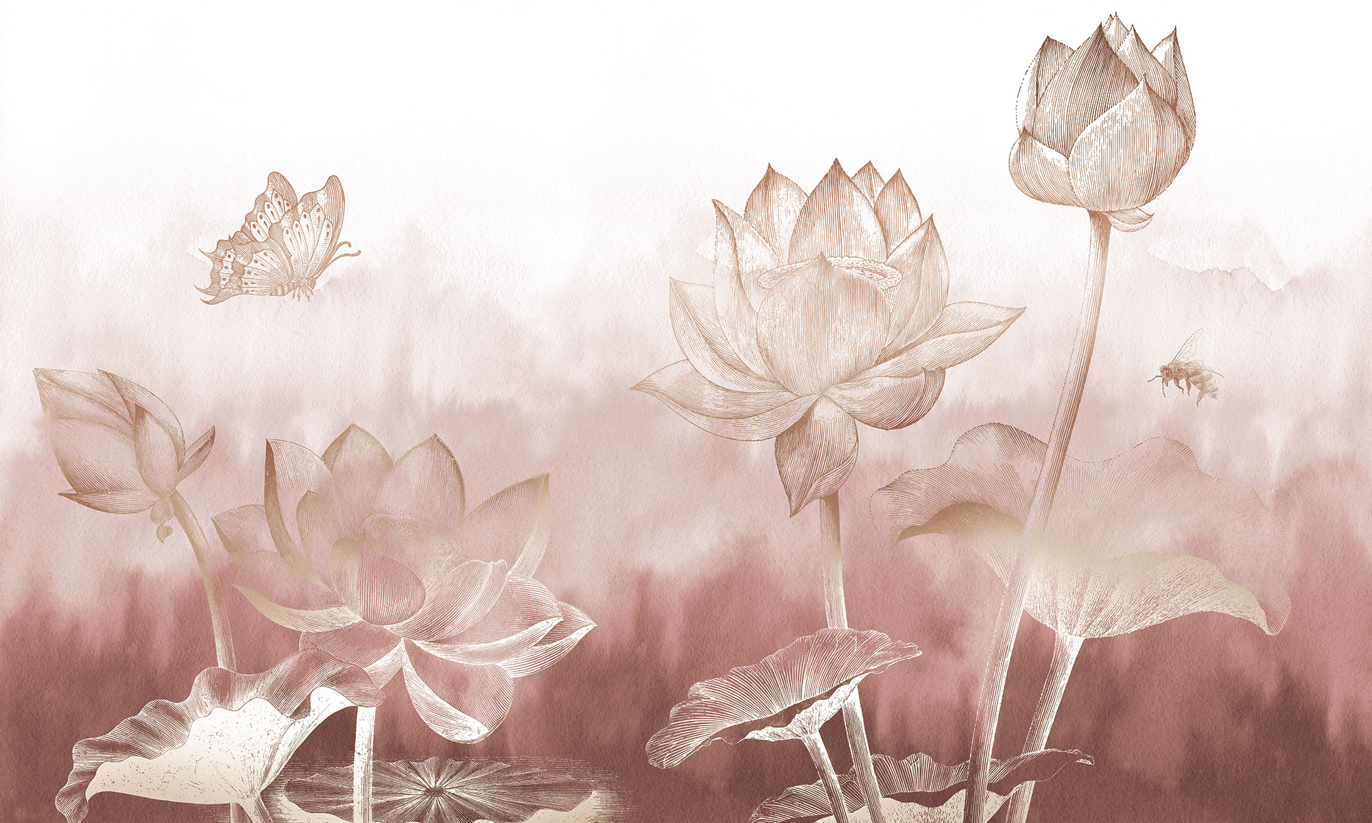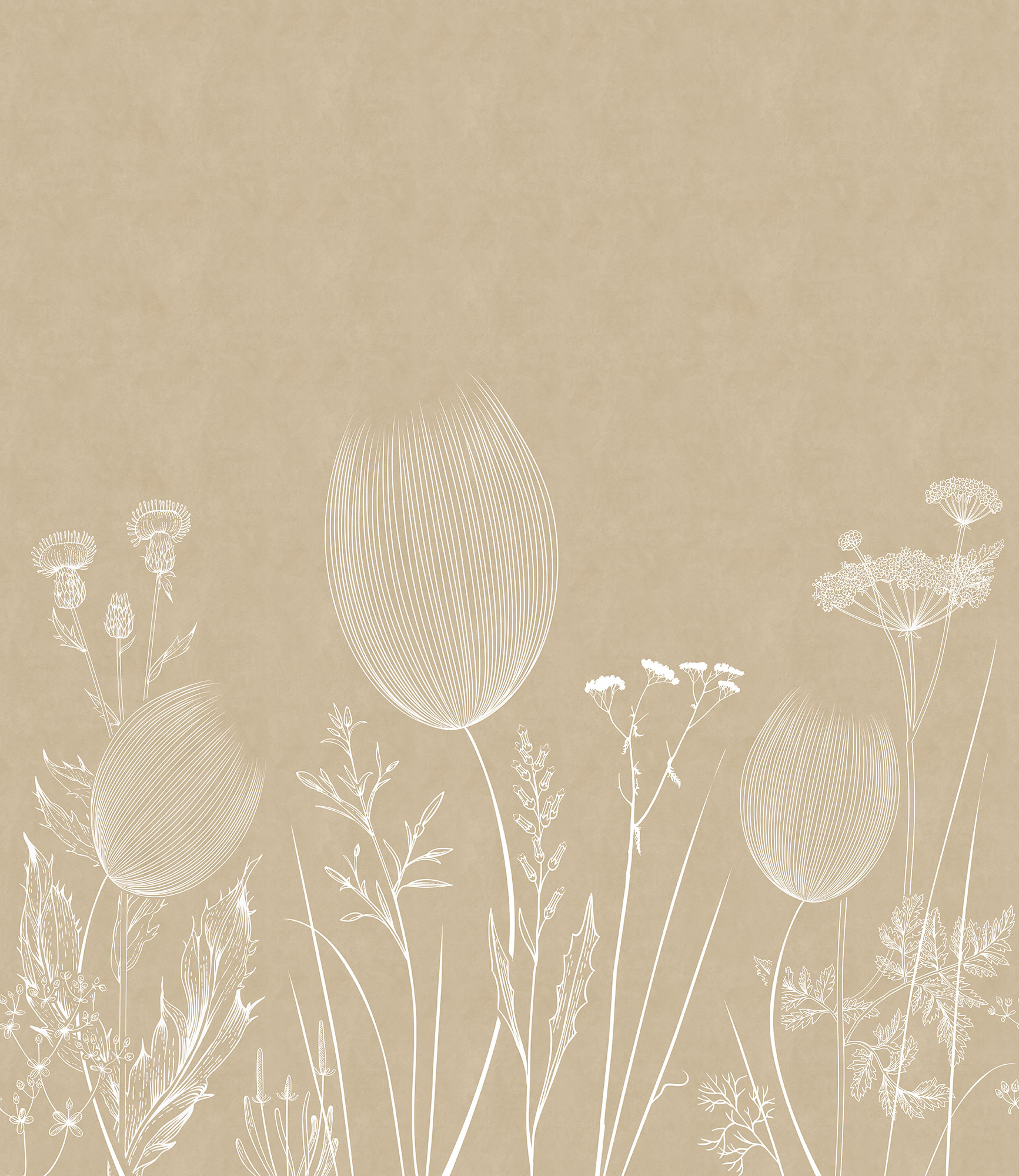 Бежевые цветочки и бабочки