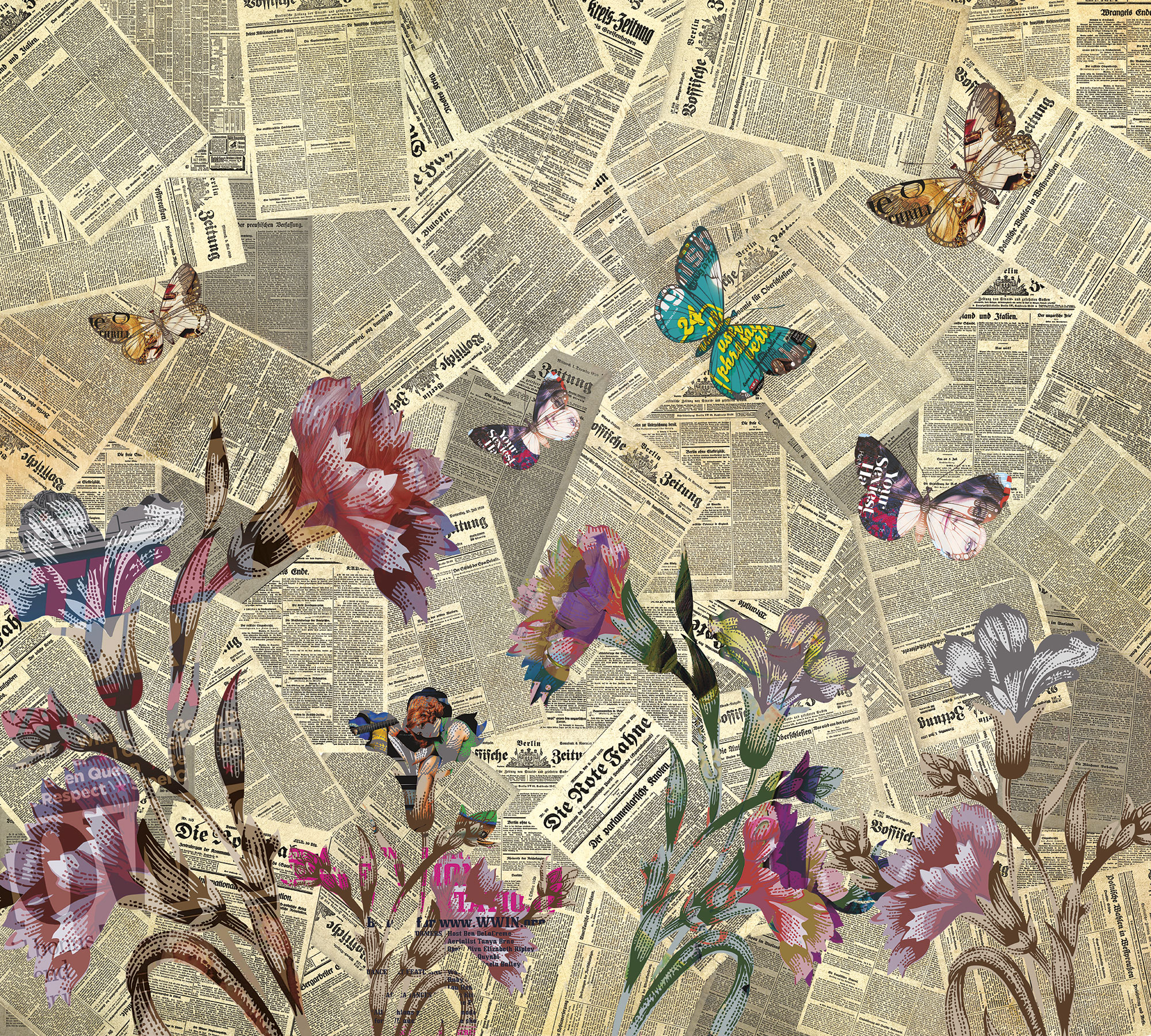 Газеты с цветами и с бабочками