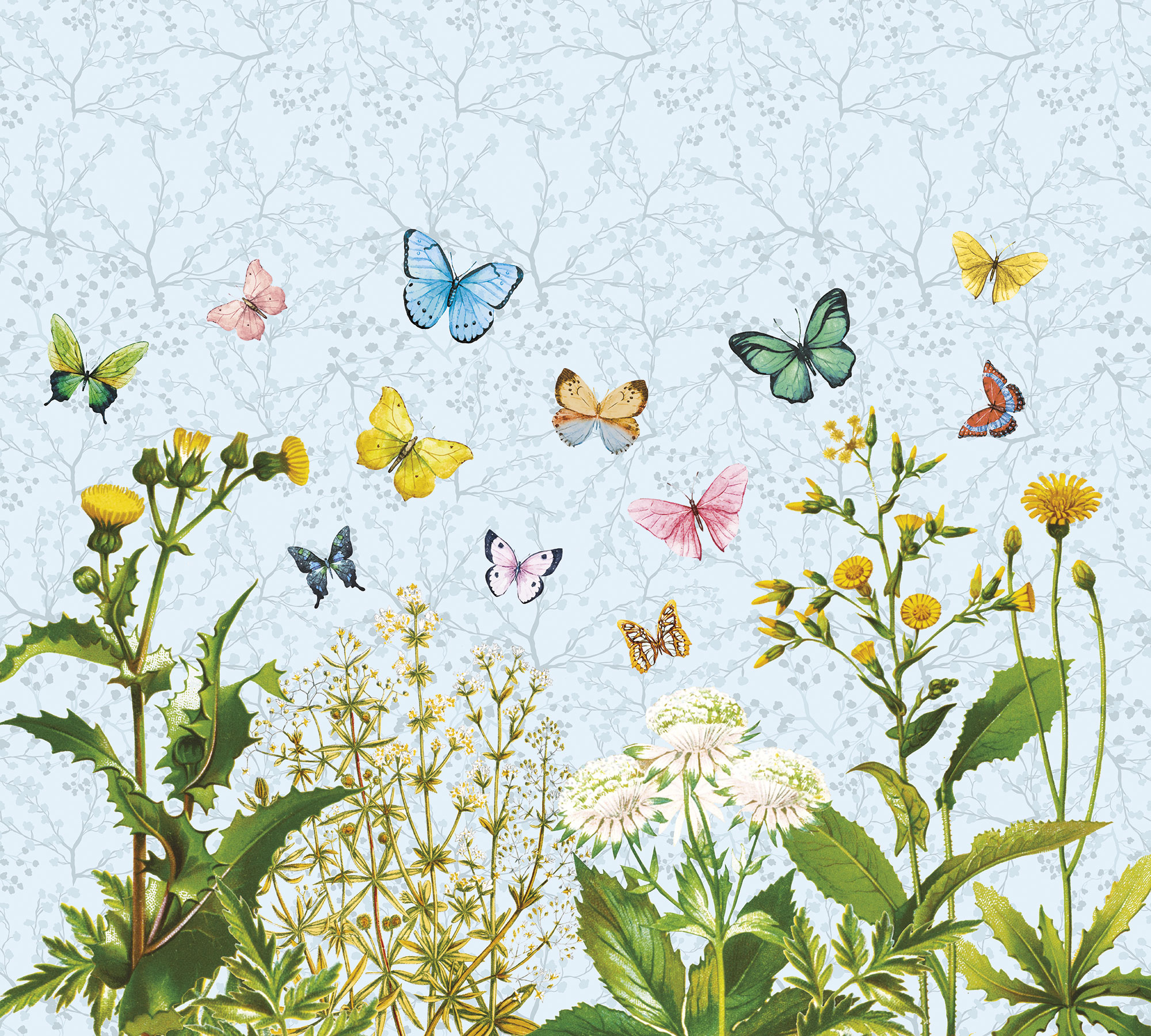 Бабочки и весенние цветы