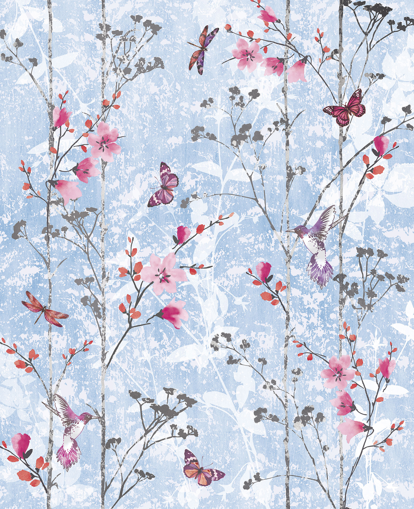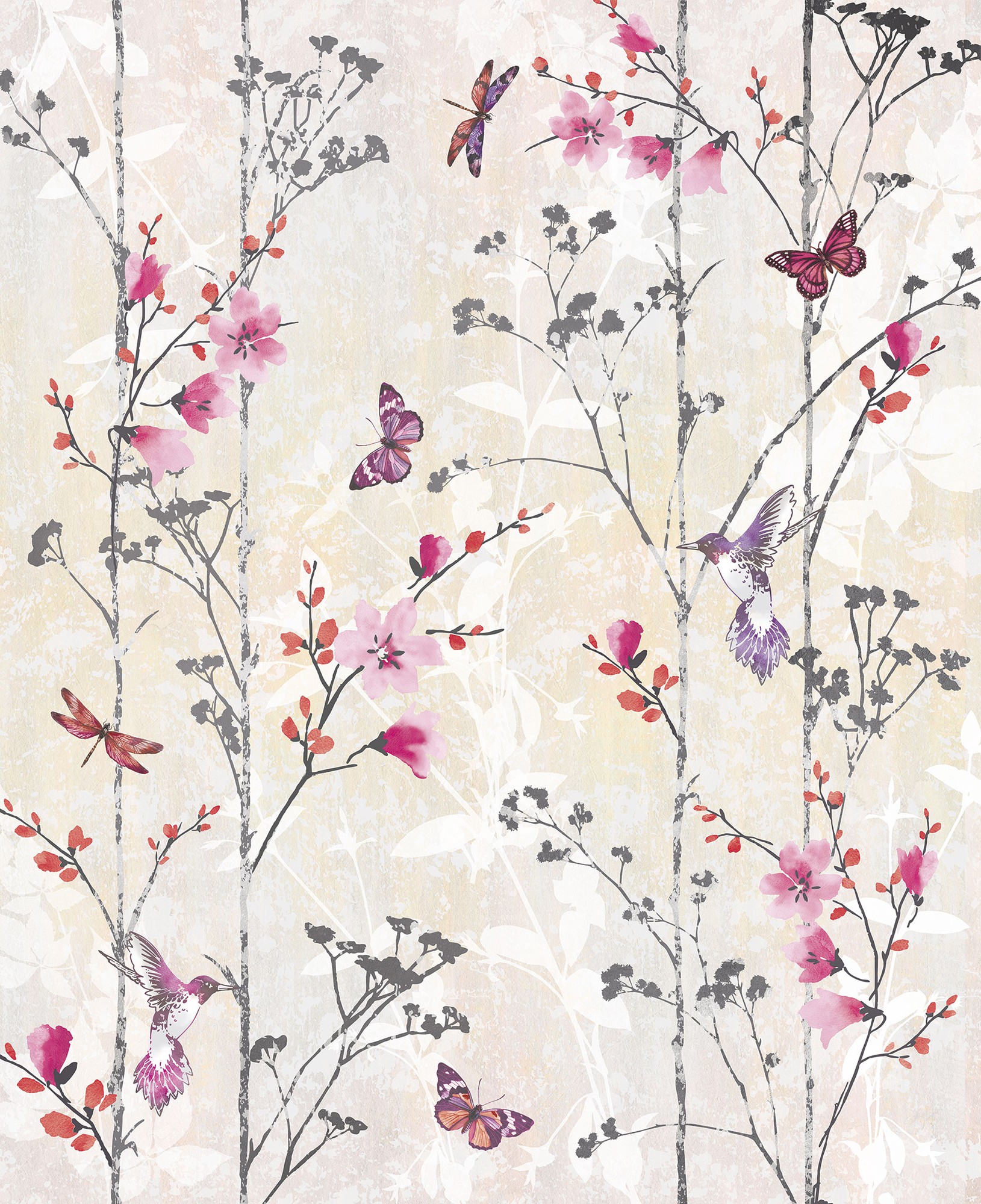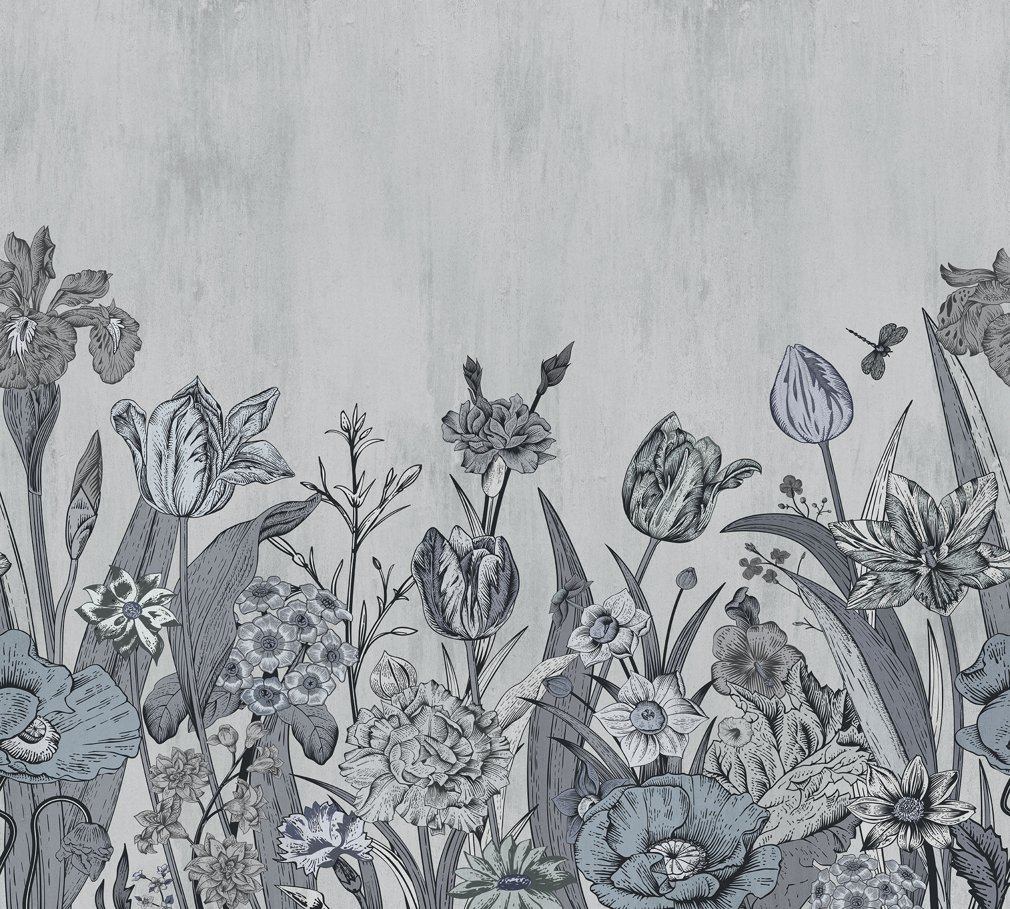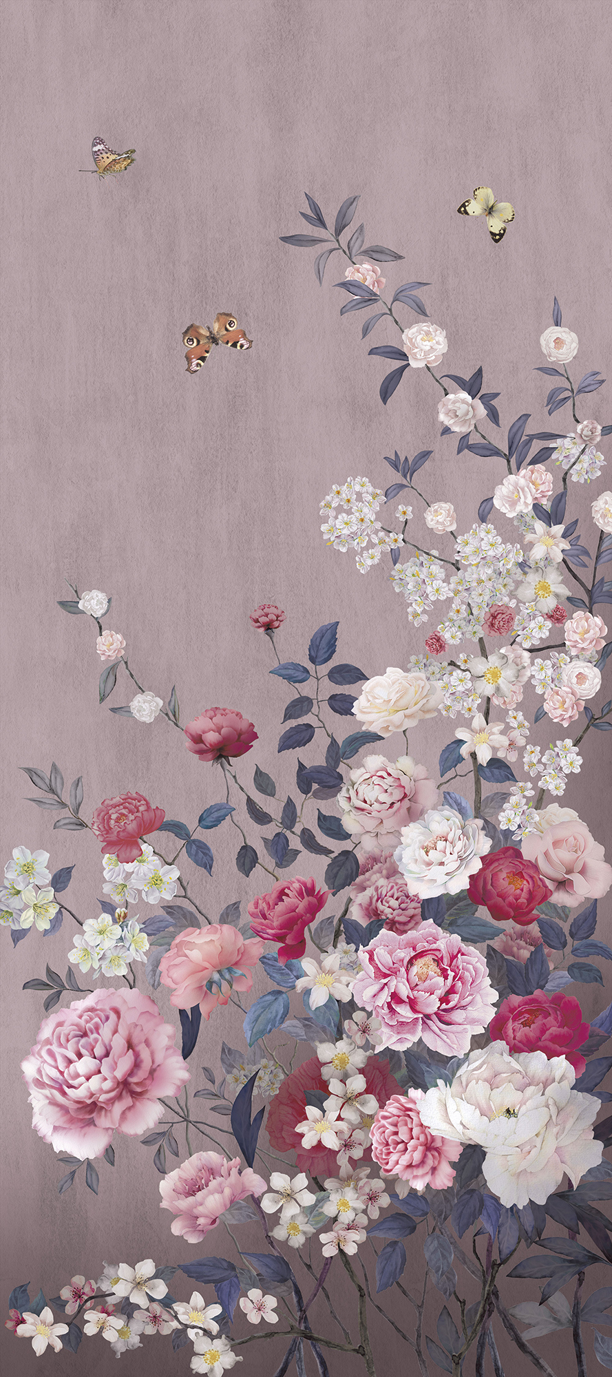 Цветы и бабочки на бетонном фоне