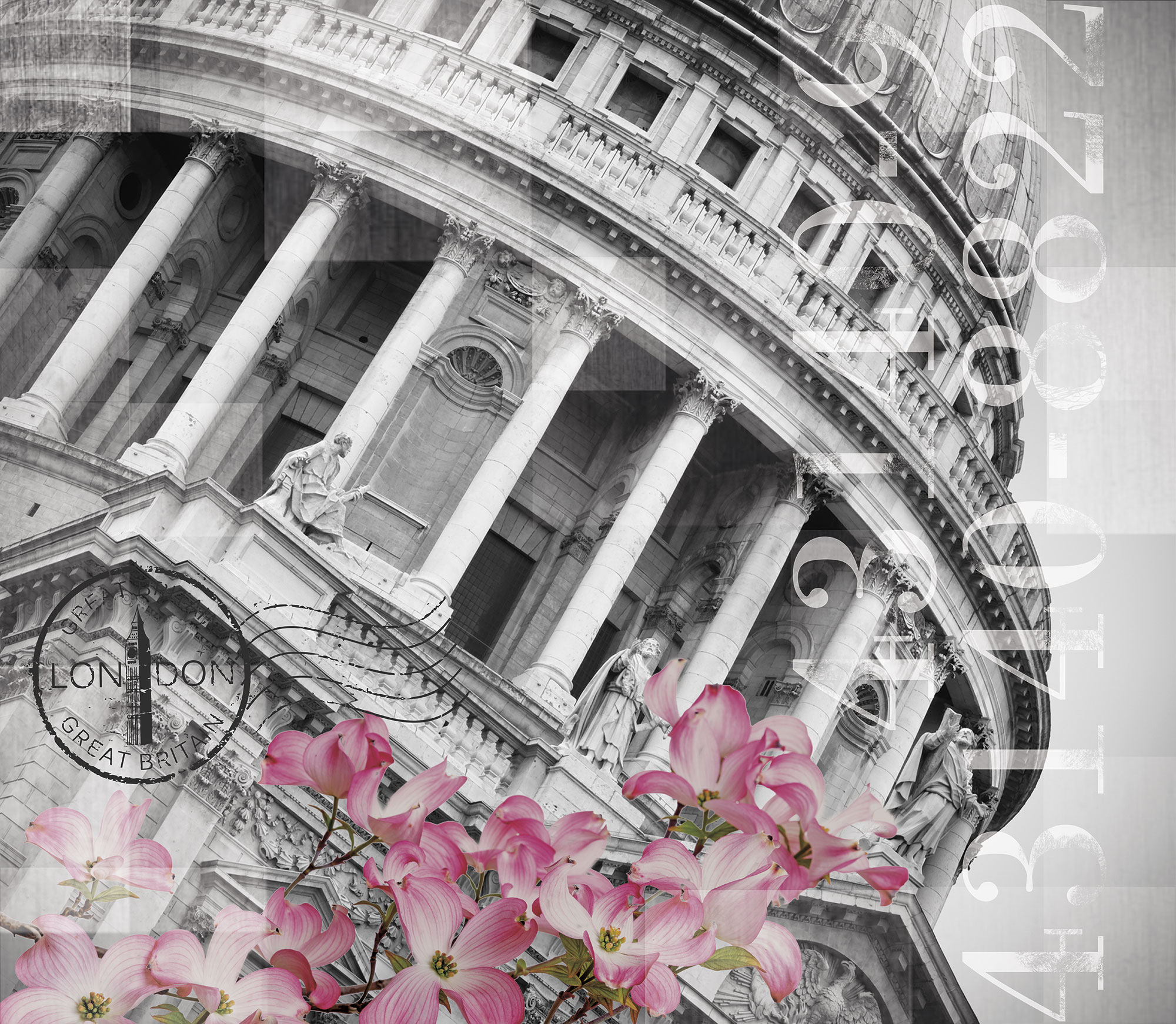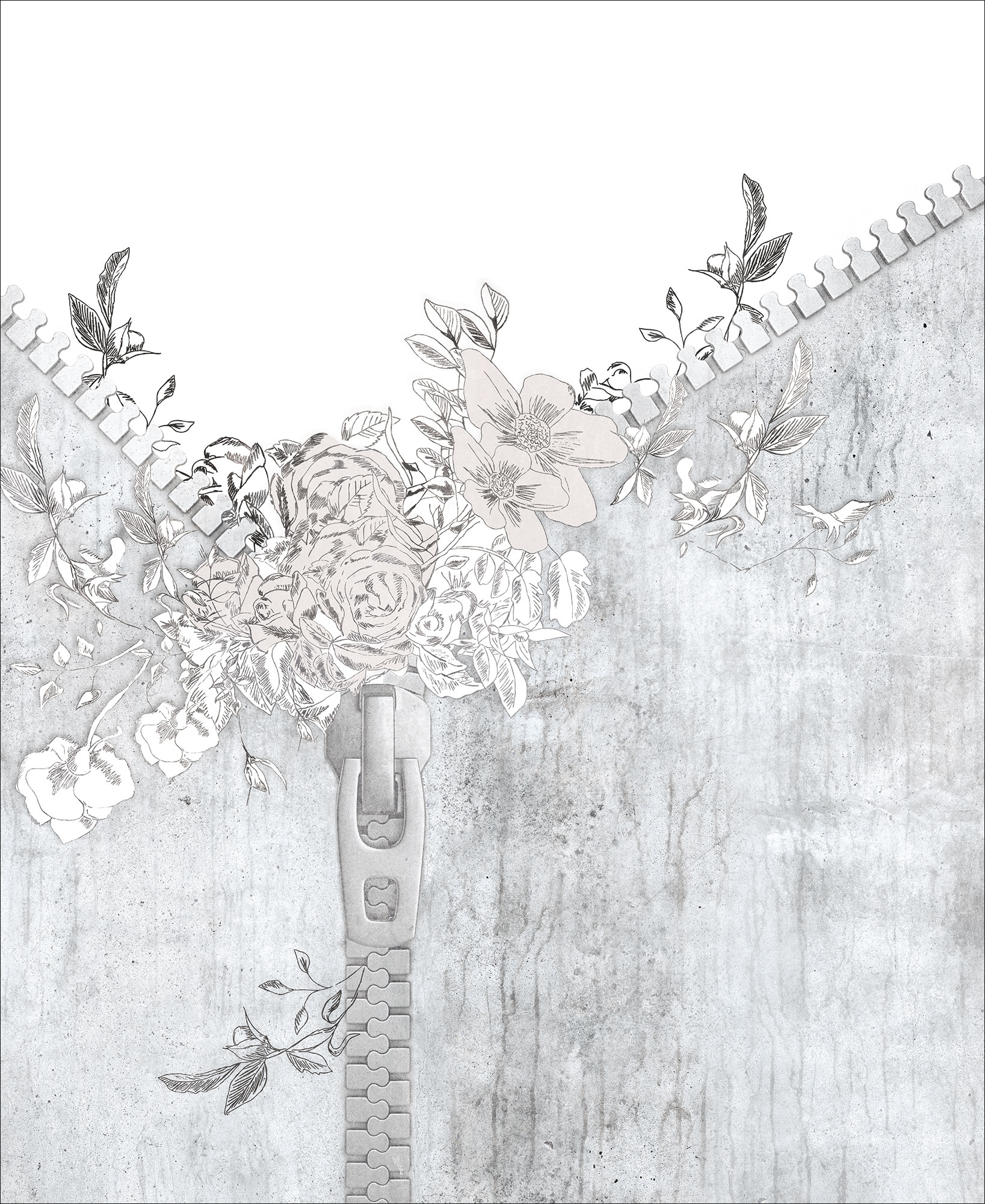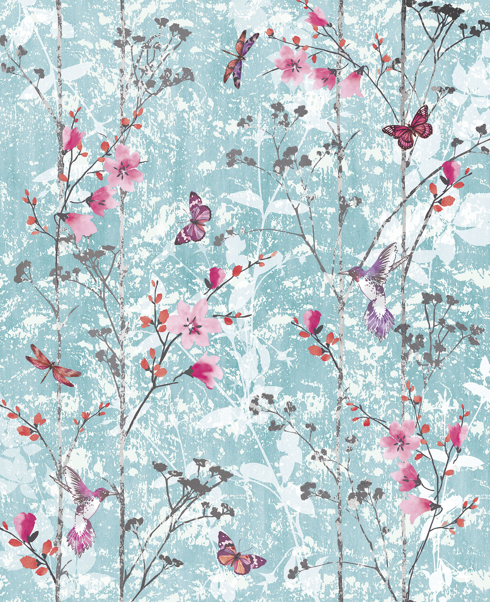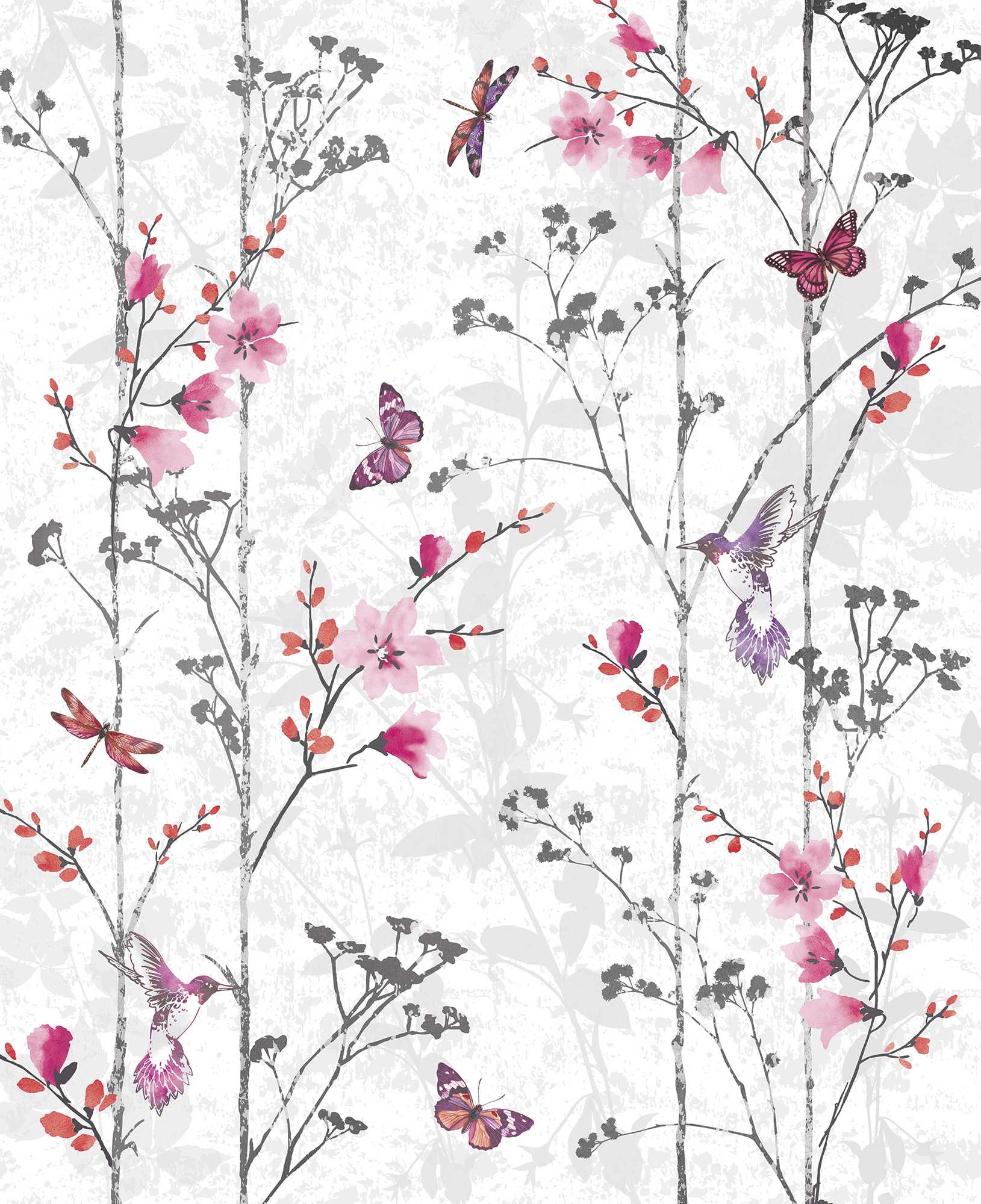 Цветы и бабочки на бетонном фоне