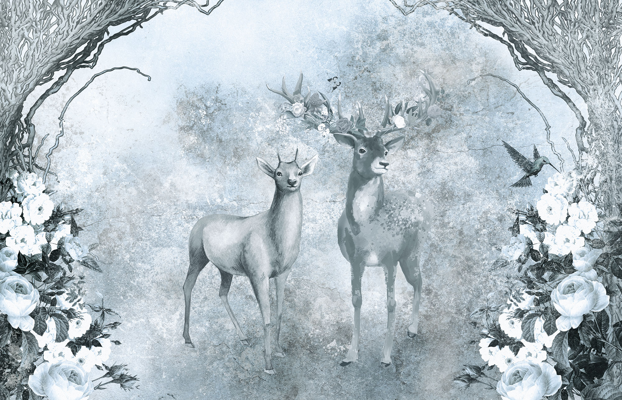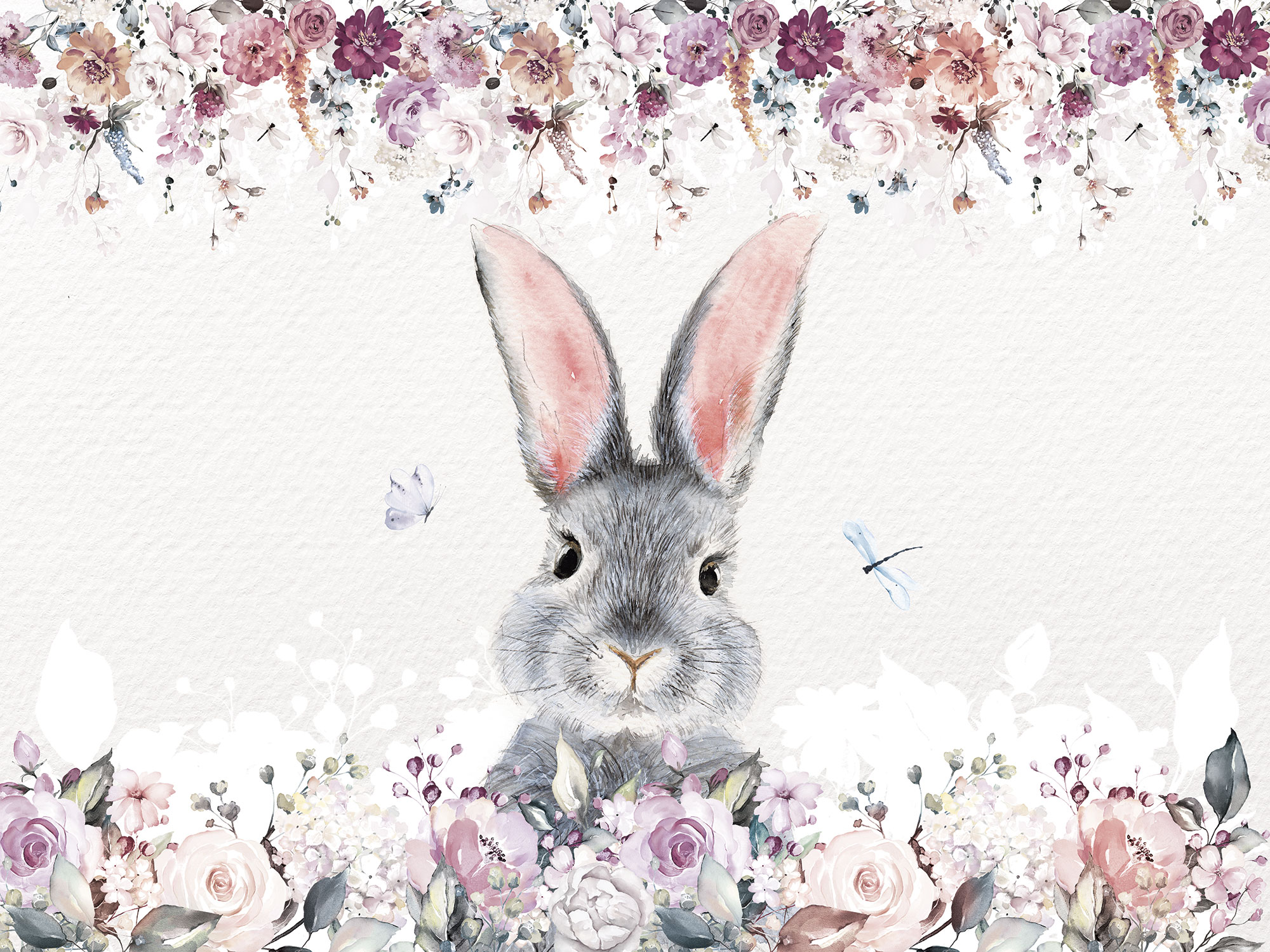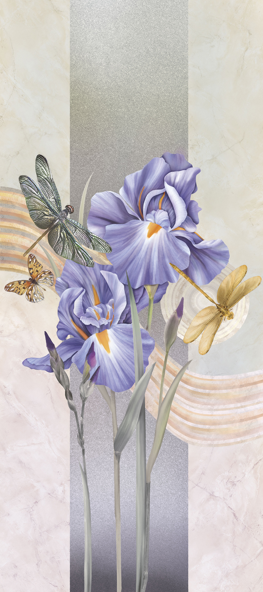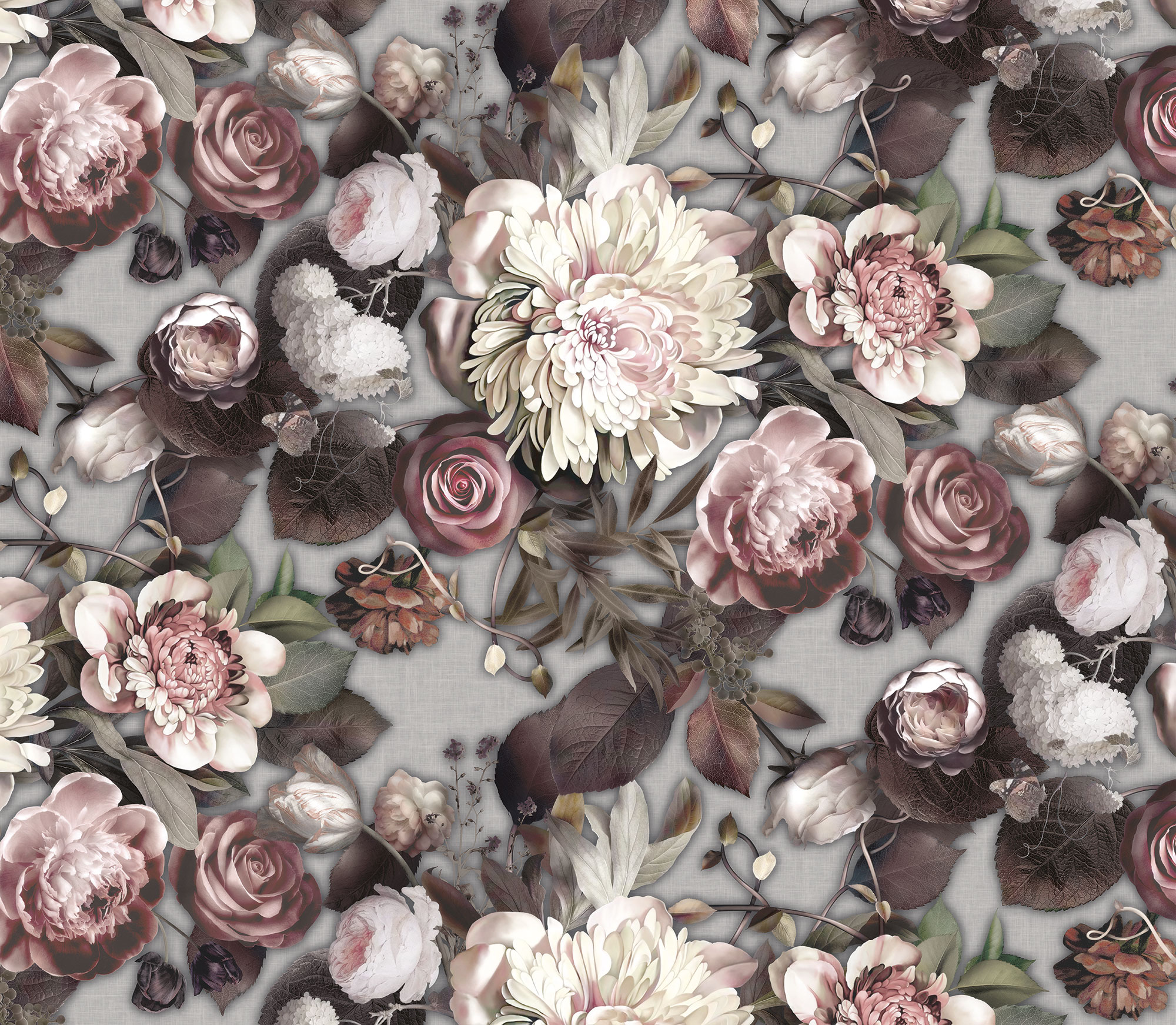 Цветы и бабочки на бетонном фоне