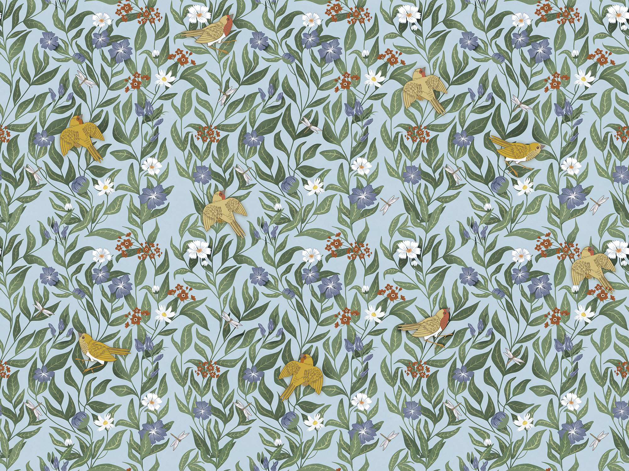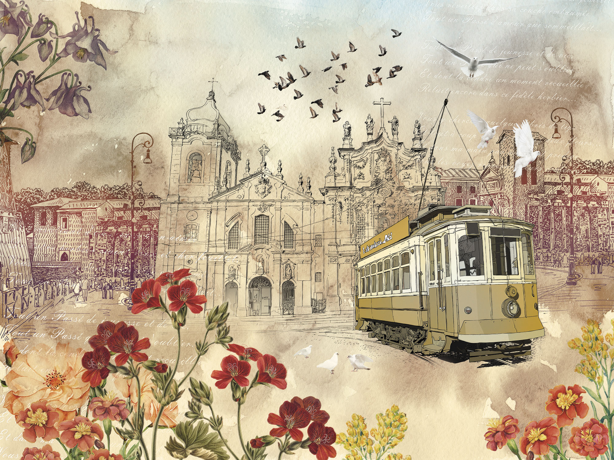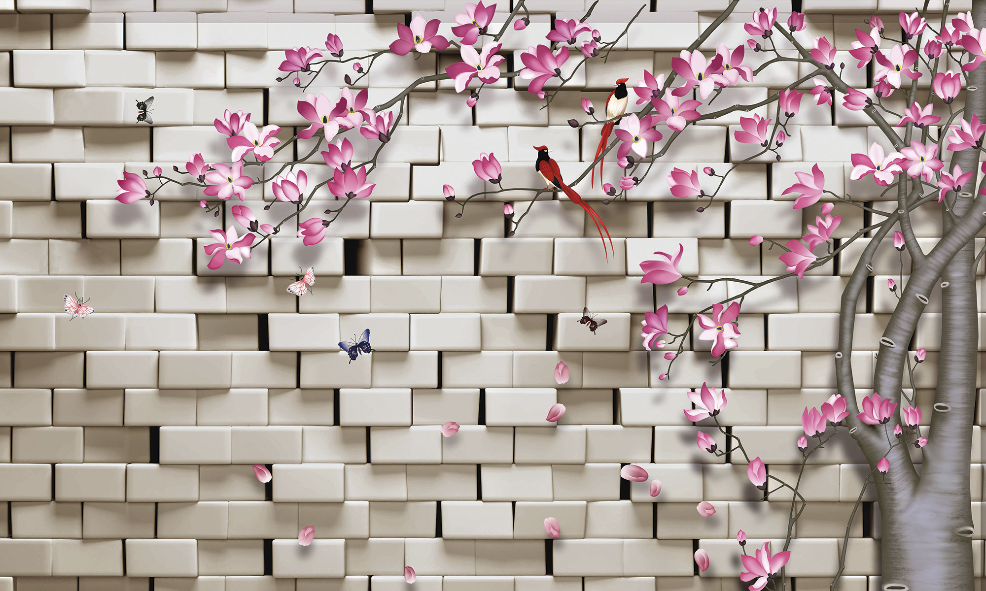 Птицы и красный цветок
