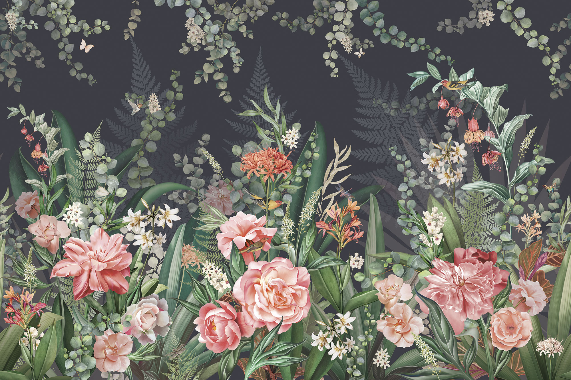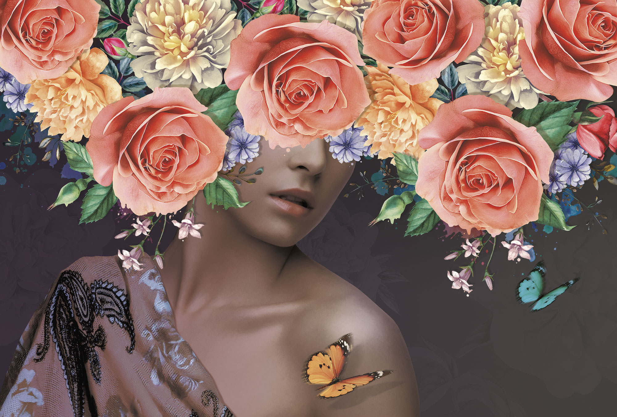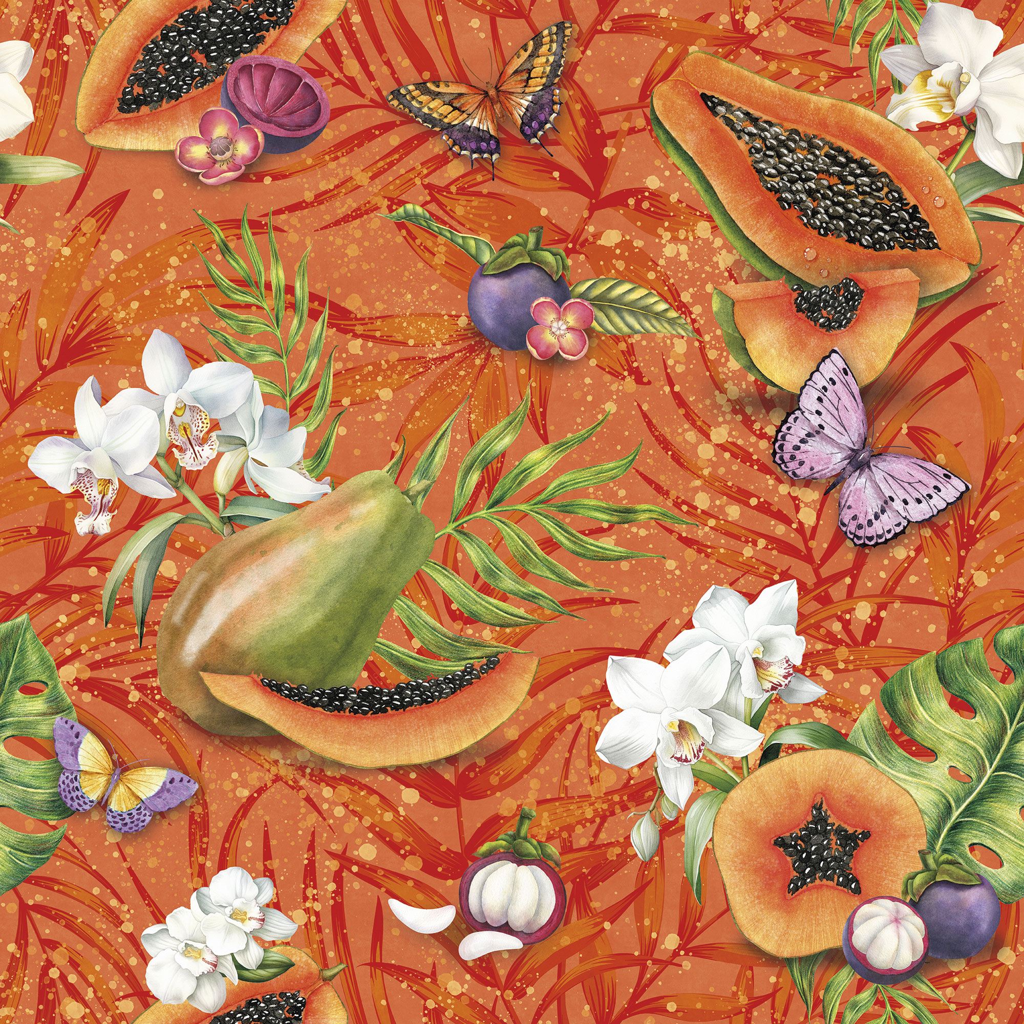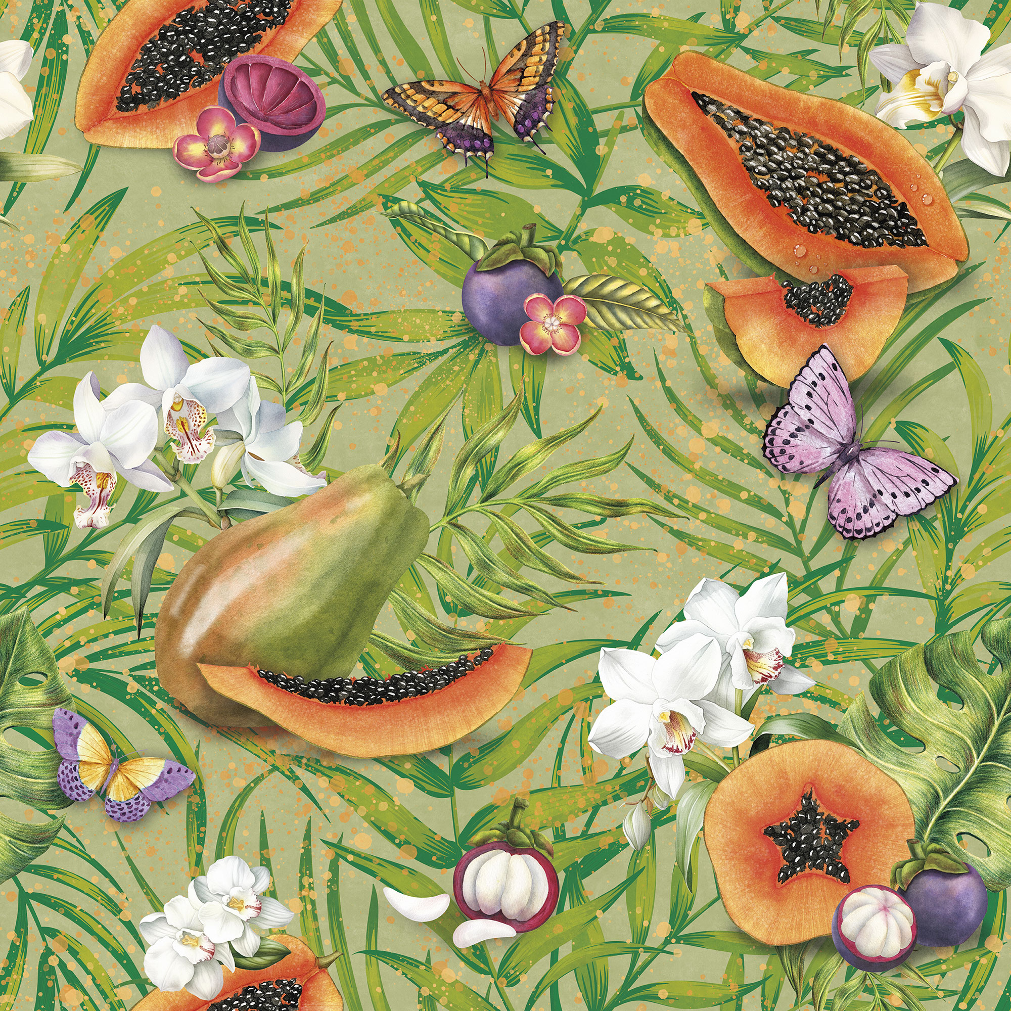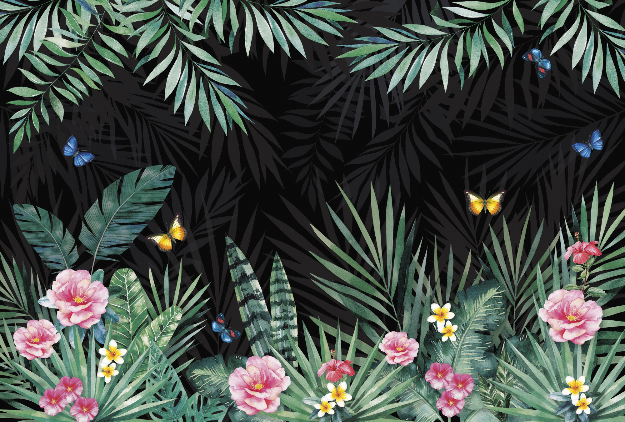 Бабочки и тропические цветы