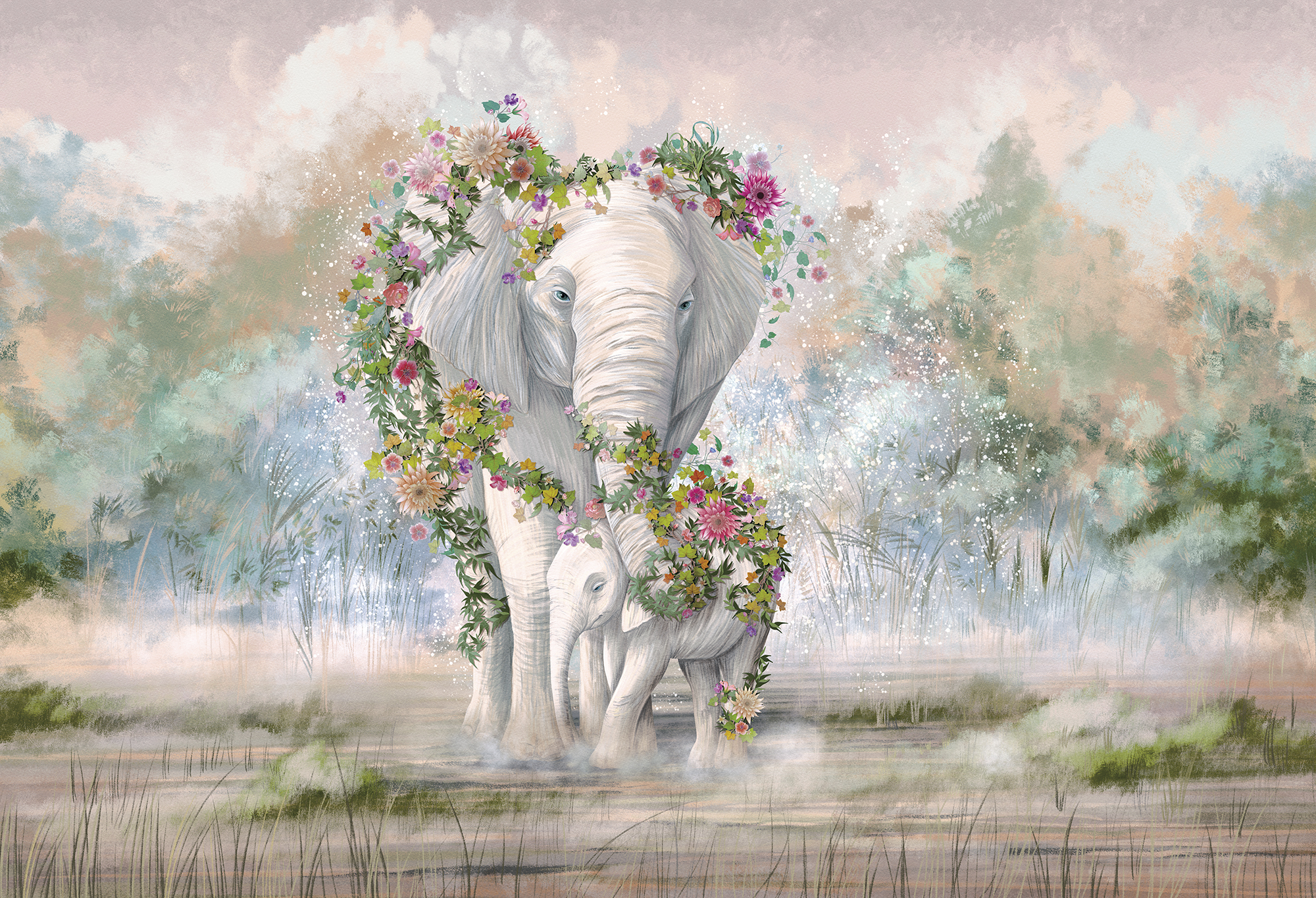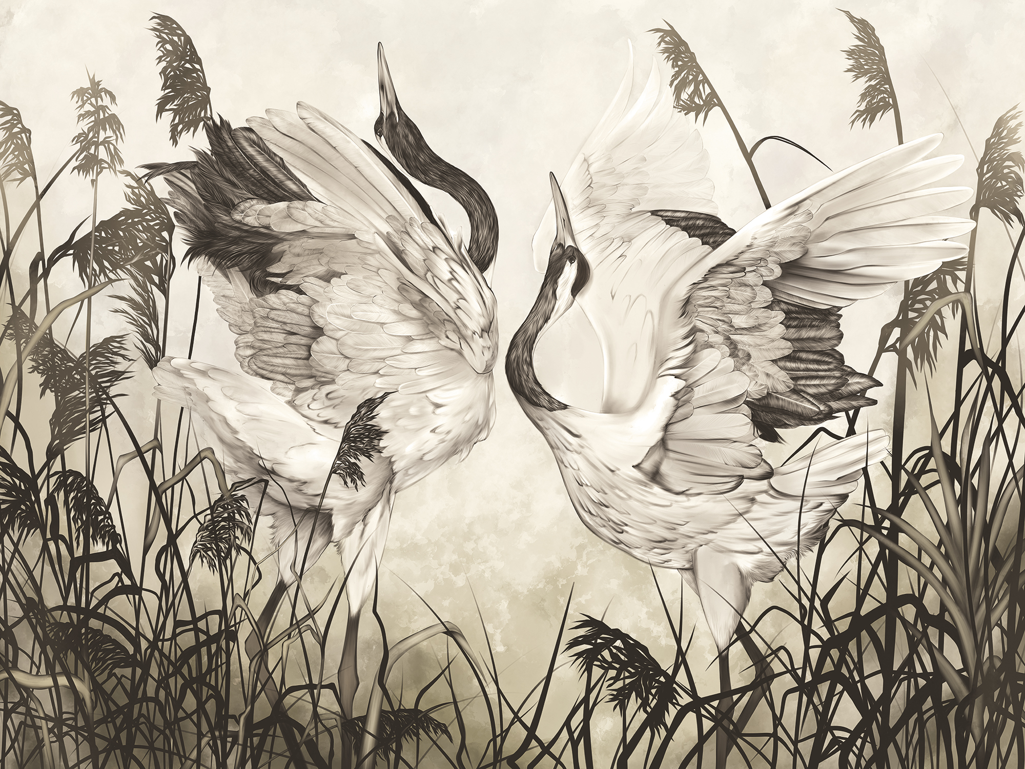 Сrowned storks and flowers